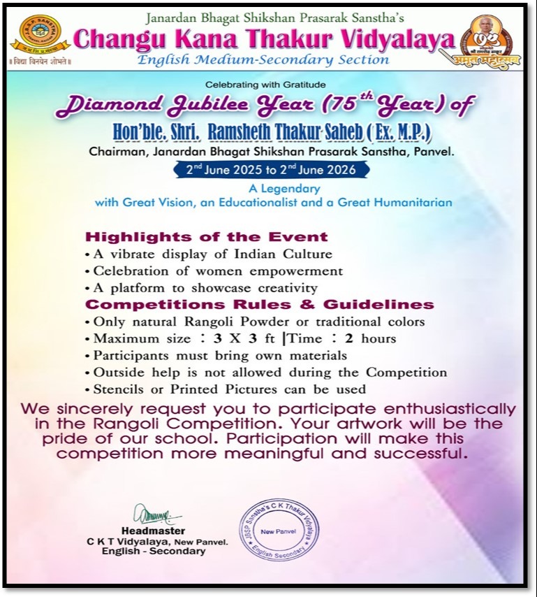 Activity Schedule -Hon. Ramshetji Thakur Saheb -75th Birth Anniversary Activity & Competition Schedule